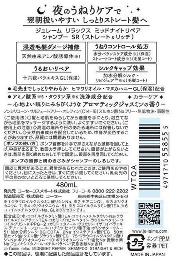 コーセーコスメポート ジュレーム リラックス ナイトリペア シャンプー 480ml 1個(ご注文単位1個)【直送品】