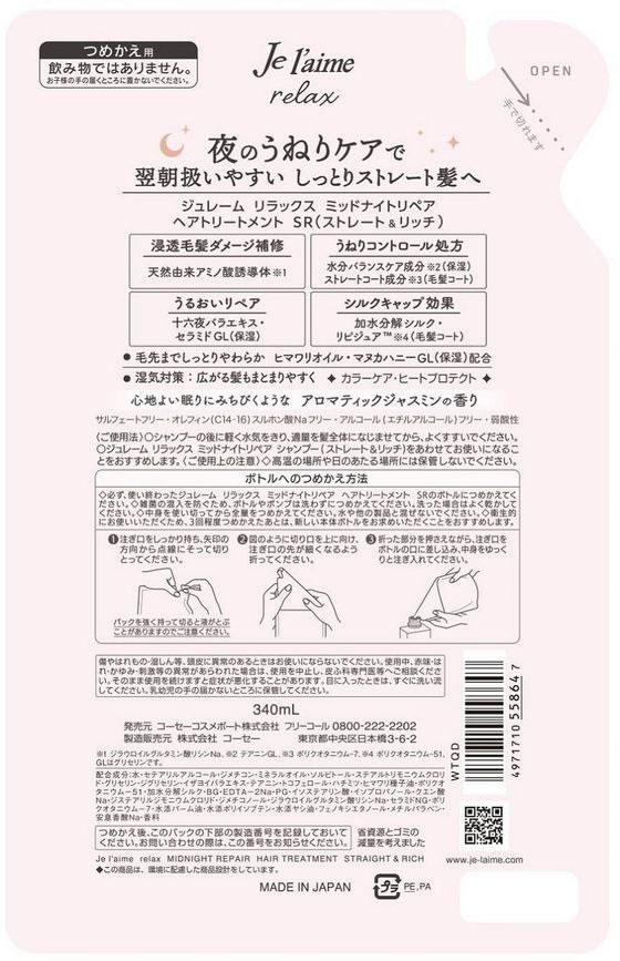 コーセーコスメポート ジュレーム リラックス ナイトリペア トリートメント替340ml 1個(ご注文単位1個)【直送品】