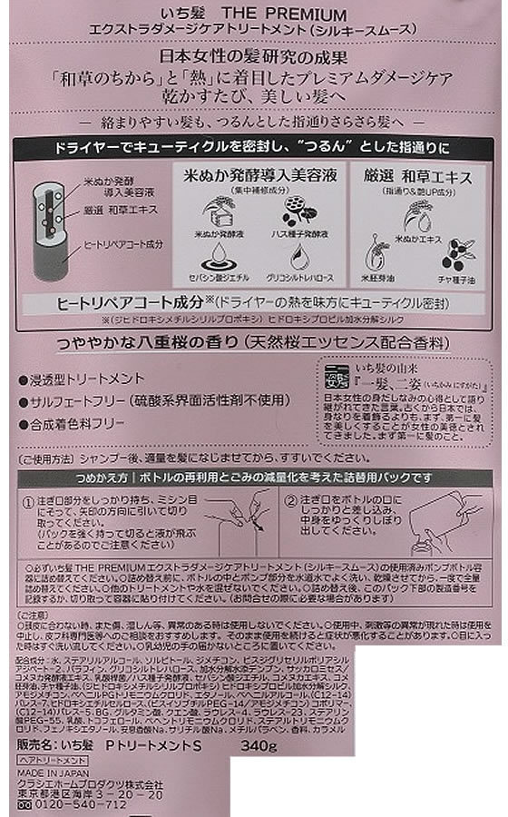 クラシエ いち髪 THE PREMIUM EXダメージケアトリートメント 替 340g 1個(ご注文単位1個)【直送品】