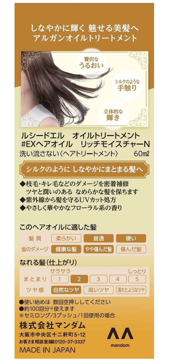 マンダム ルシードエル オイルトリートメント EXヘアオイルリッチモイスチャー 60ml 1本(ご注文単位1本)【直送品】
