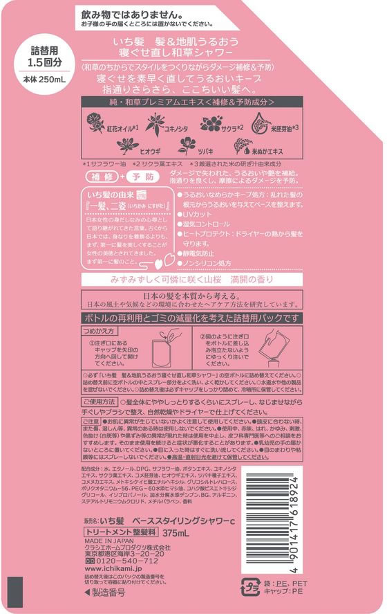 クラシエ いち髪 髪&地肌うるおう寝ぐせ直し和草シャワー 詰替 1個(ご注文単位1個)【直送品】