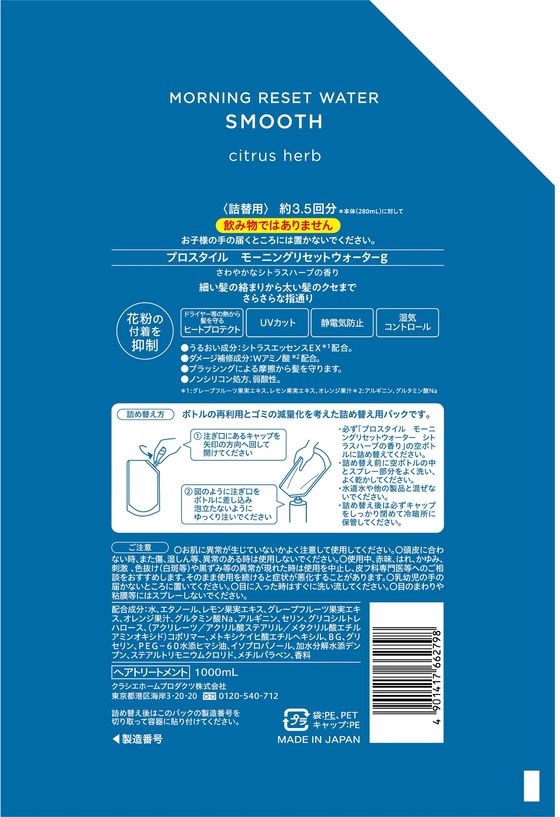 クラシエ プロスタイル モーニングリセットウォーター 詰替用シトラスハーブ 1000ml 1個(ご注文単位1個)【直送品】