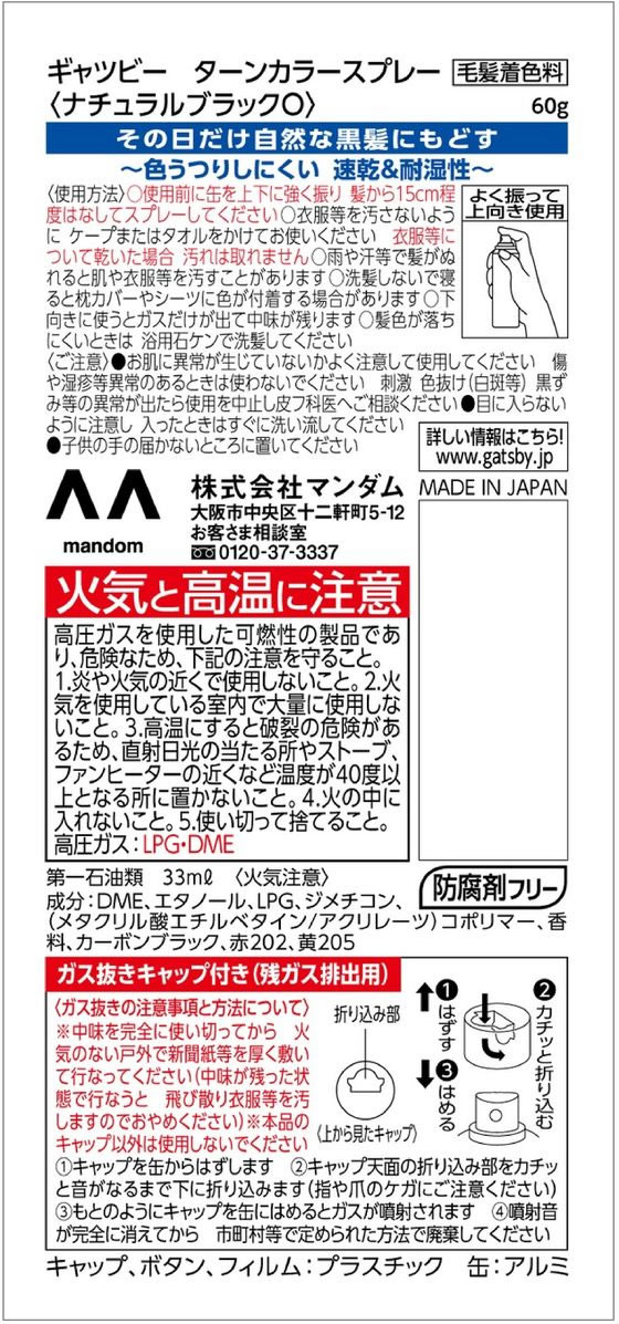 マンダム ギャツビー ターンカラースプレー ナチュラルブラック 1本(ご注文単位1本)【直送品】