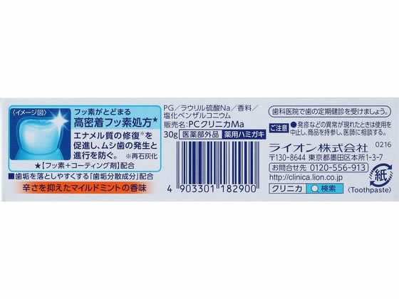 ライオン クリニカハミガキ マイルドミントヨコ型 30g 1本(ご注文単位1本)【直送品】