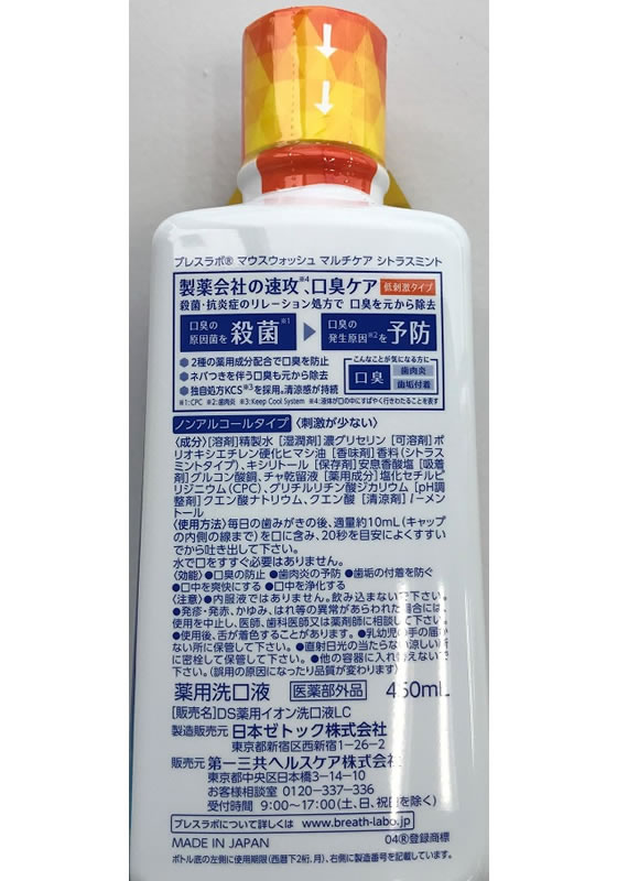 第一三共 ブレスラボ マウスウォッシュ マルチケア シトラスミント 450mL 1本(ご注文単位1本)【直送品】