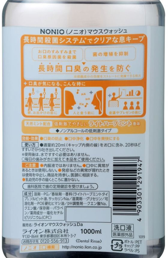 ライオン NONIO マウスウオッシュ ノンアルコール ライトハーブミント 1000ml 1本(ご注文単位1本)【直送品】