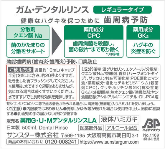 サンスター ガムデンタルリンス 500ml 1個(ご注文単位1個)【直送品】