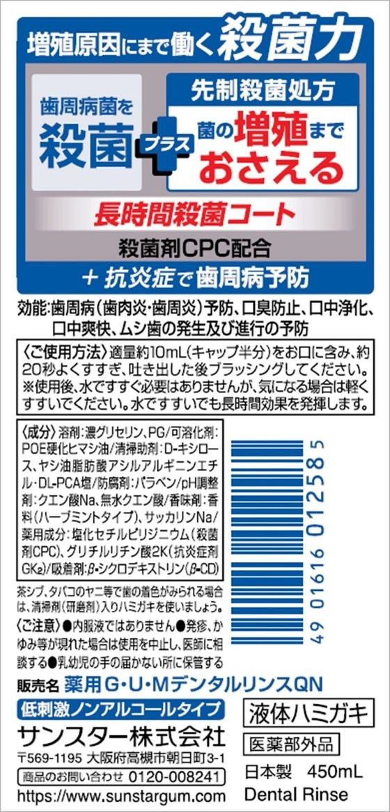 サンスター ガム・プラス デンタルリンス 低刺激ノンアルコールタイプ 450mL 1個(ご注文単位1個)【直送品】