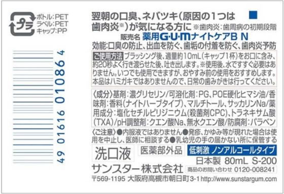 サンスター ガムナイトケア 80mL 1個(ご注文単位1個)【直送品】