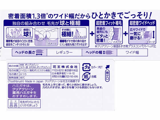 KAO クリアクリーンハブラシ 歯面&すき間 超密着ワイド ふつう 1本(ご注文単位1本)【直送品】