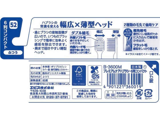 エビス プレミアムケア 歯ブラシ 6列コンパクト ふつう B-3600M 1本(ご注文単位1本)【直送品】