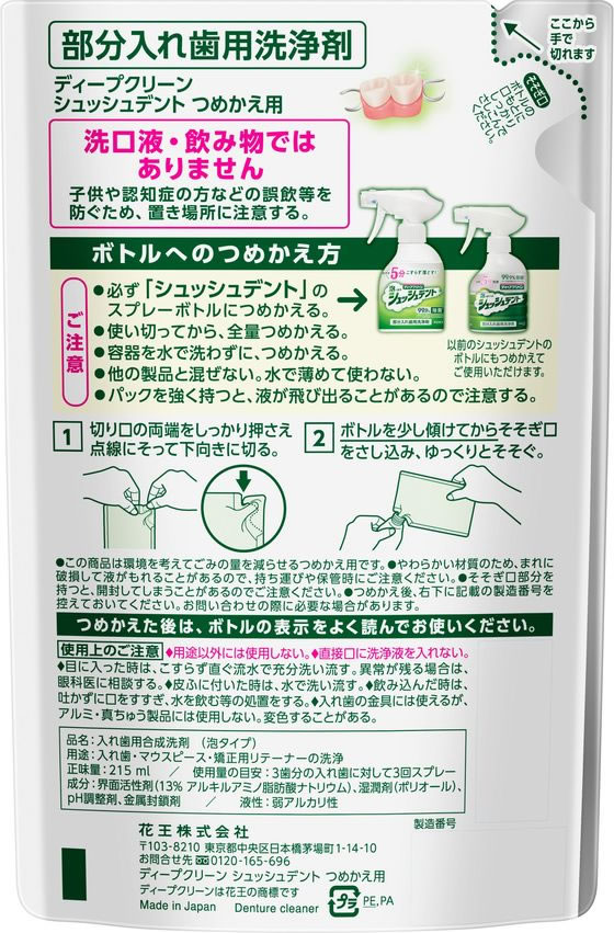 KAO ディープクリーン シュッシュデント 部分入れ歯洗浄剤 つめかえ 1個(ご注文単位1個)【直送品】