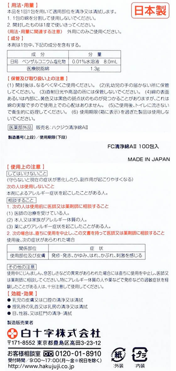 白十字 FC 清浄綿 AII 100包 1箱(ご注文単位1箱)【直送品】