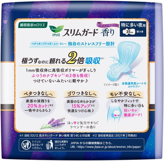 KAO ロリエ スリムガード ラベンダーの香り 特に多い夜用350 12コ 1パック(ご注文単位1パック)【直送品】