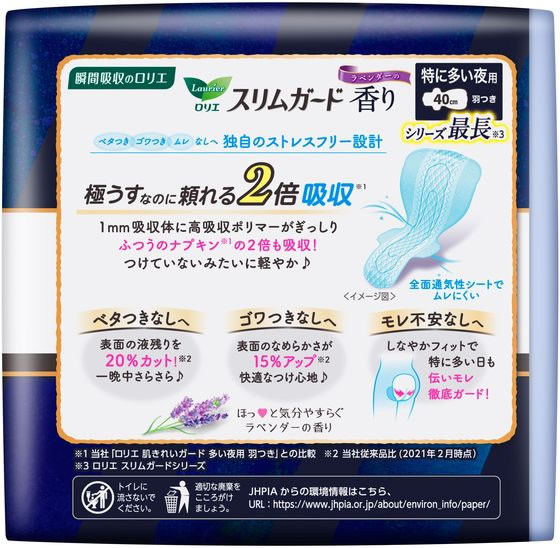 KAO ロリエ スリムガード ラベンダーの香り 特に多い夜用400 10コ 1パック(ご注文単位1パック)【直送品】