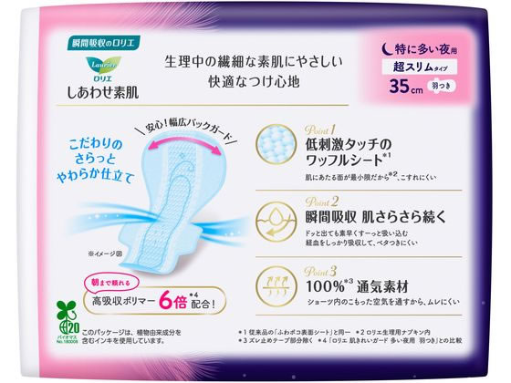 KAO ロリエ しあわせ素肌 超スリム 特に多い夜用350羽付10個 1パック(ご注文単位1パック)【直送品】