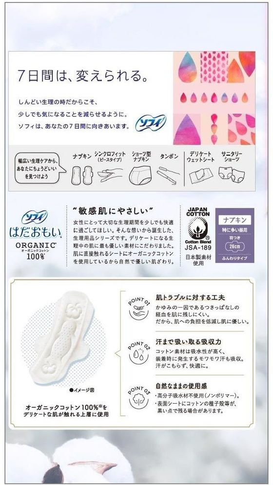 ユニ・チャーム ソフィはだおもいオーガニックコットン特に多い昼用羽つき 1パック(ご注文単位1パック)【直送品】