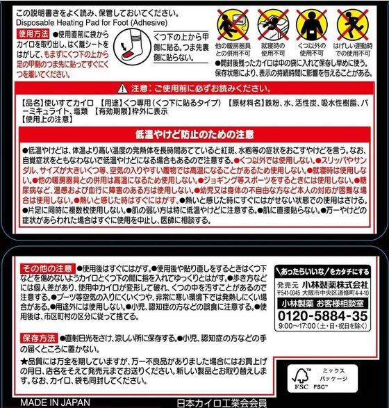 小林製薬 桐灰カイロくつ下用甲に貼る 黒 30個入(15足分) 1箱(ご注文単位1箱)【直送品】