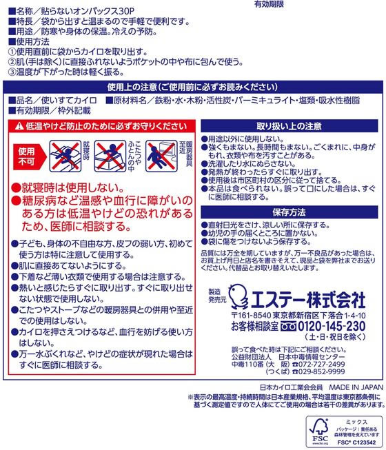 エステー 貼らないオンパックス 30個 1箱(ご注文単位1箱)【直送品】