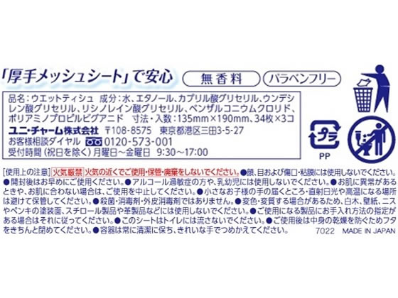 ユニ・チャーム シルコット 99.99%除菌ウェットティッシュ 抗菌Plus 詰替3個 1パック(ご注文単位1パック)【直送品】