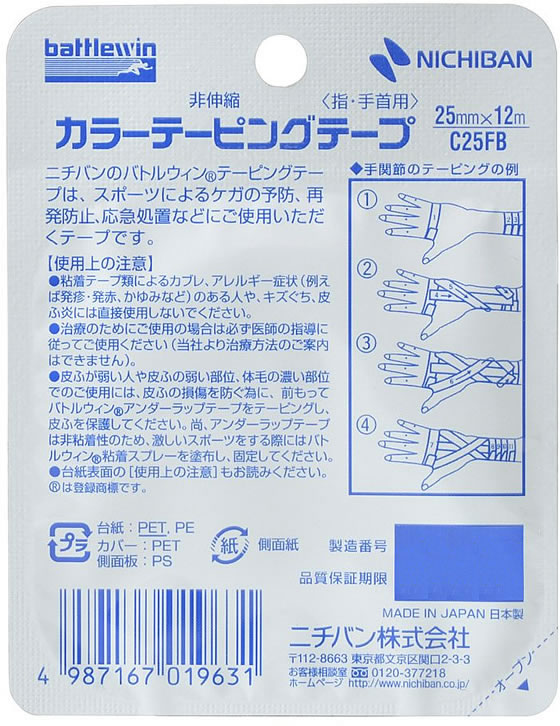 ニチバン バトルウィン カラーテーピングテープ 非伸縮タイプ C25FB 1巻 1巻(ご注文単位1巻)【直送品】