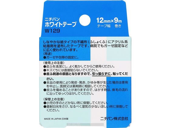 ニチバン ホワイトテープ 12mm×9m W129 1巻 1巻(ご注文単位1巻)【直送品】