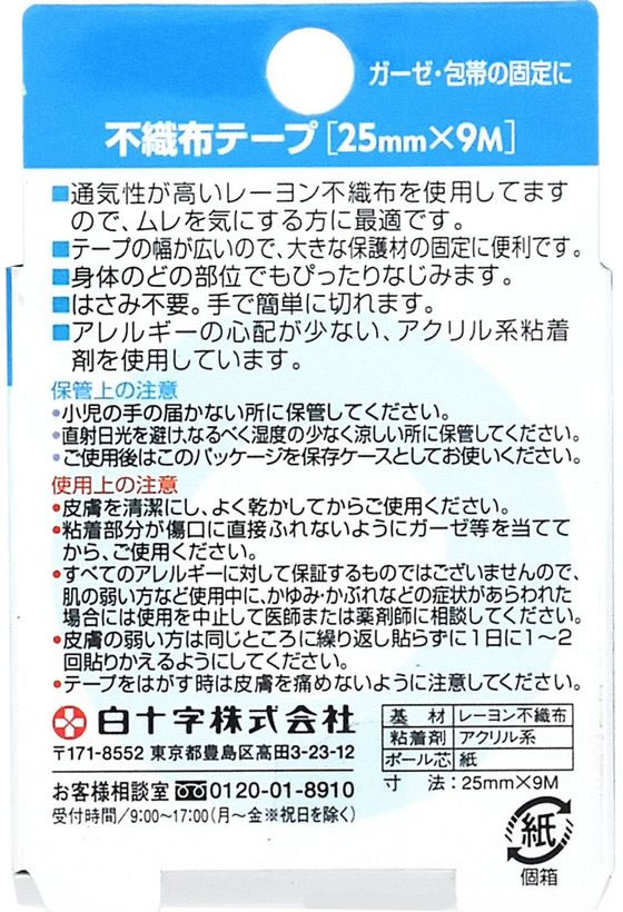 白十字 FC 不織布テープ 25mm幅×9m 1巻(ご注文単位1巻)【直送品】