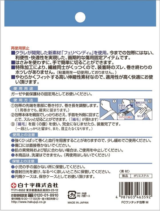 白十字 FC ワンタッチ包帯 M 幅50mm×3m 1巻(ご注文単位1巻)【直送品】