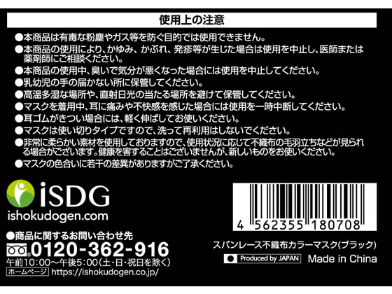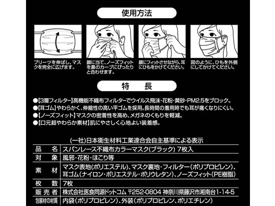 医食同源 SPUN MASK ブラック 7枚入 1個(ご注文単位1個)【直送品】