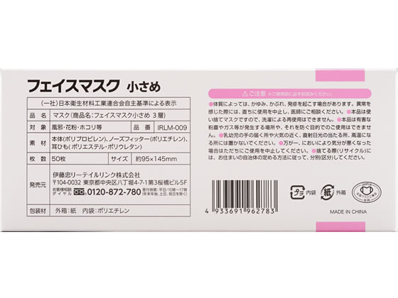 伊藤忠リーテイルリンク 3層 フェイスマスク 小さめ 50枚 1箱(ご注文単位1箱)【直送品】