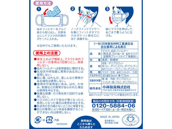 小林製薬 のどぬ~るぬれマスク就寝用 無香 3組 1箱(ご注文単位1箱)【直送品】