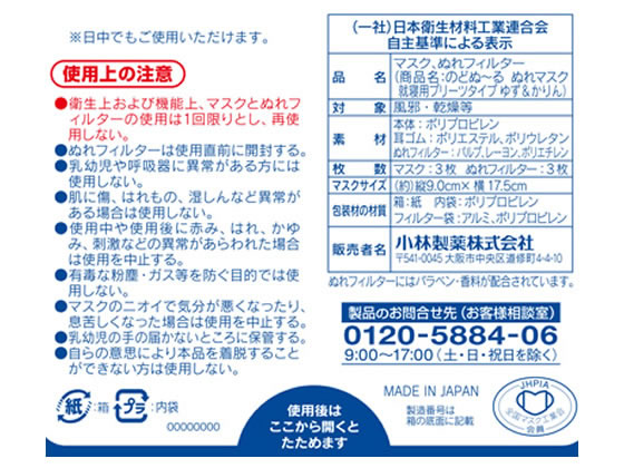 小林製薬 のどぬ~るぬれマスク就寝用 ゆず&かりん 3組 1箱(ご注文単位1箱)【直送品】