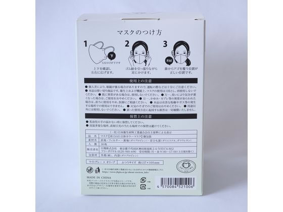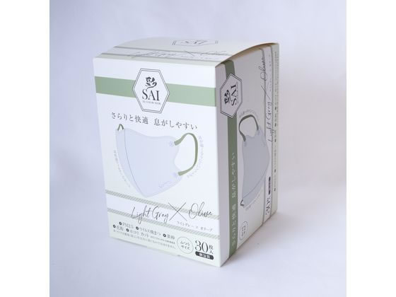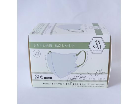 日翔 彩 立体マスク 個包装 30枚 ライトグレー×オリーブ ふつう 1箱(ご注文単位1箱)【直送品】