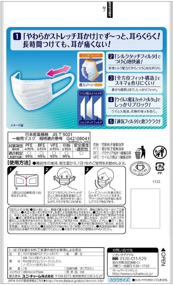 ユニ・チャーム 超快適マスクプリーツタイプ ふつう 7枚 1パック(ご注文単位1パック)【直送品】