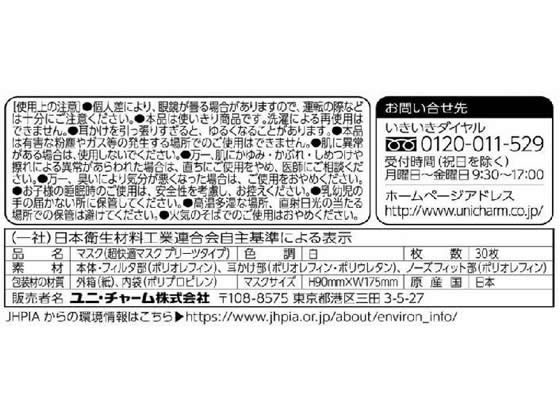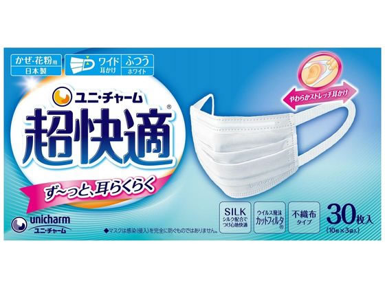 ユニ・チャーム 超快適マスクプリーツタイプ ふつう 30枚 1箱(ご注文単位1箱)【直送品】