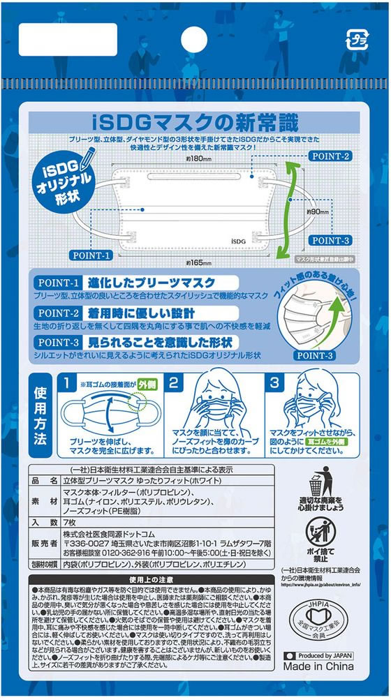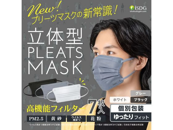 医食同源 立体型プリーツマスク ゆったりフィット ホワイト 7枚入 1個(ご注文単位1個)【直送品】