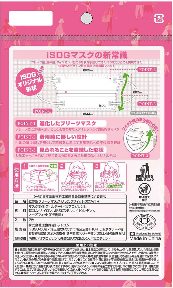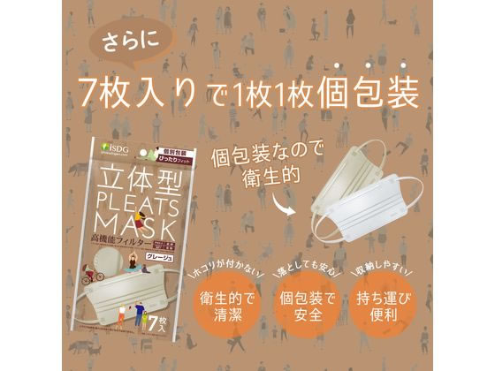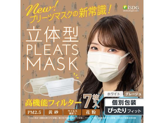 医食同源 立体型プリーツマスク ぴったりフィット ホワイト 7枚入 1個(ご注文単位1個)【直送品】