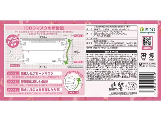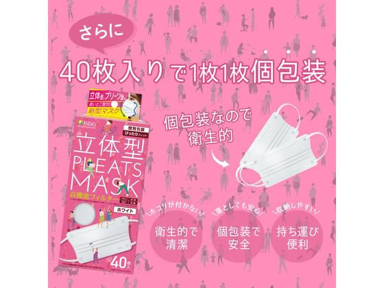医食同源 立体型プリーツマスク ぴったりフィット ホワイト 40枚入 1個(ご注文単位1個)【直送品】
