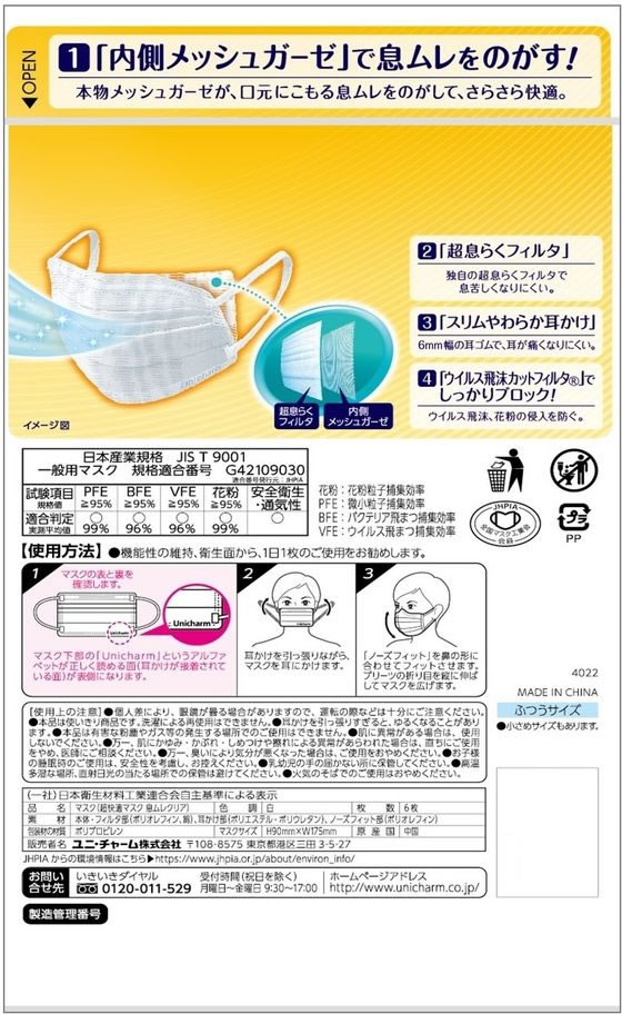 ユニ・チャーム 超快適マスク 息ムレクリア ふつう 6枚 1個(ご注文単位1個)【直送品】