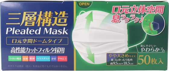 カネイシ 三層構造空間ドーム型マスクやや大きめ 50枚入 405810 1箱(ご注文単位1箱)【直送品】
