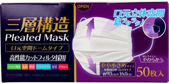 カネイシ 三層構造空間ドーム型マスクやや小さめ 50枚入 405812 1箱(ご注文単位1箱)【直送品】