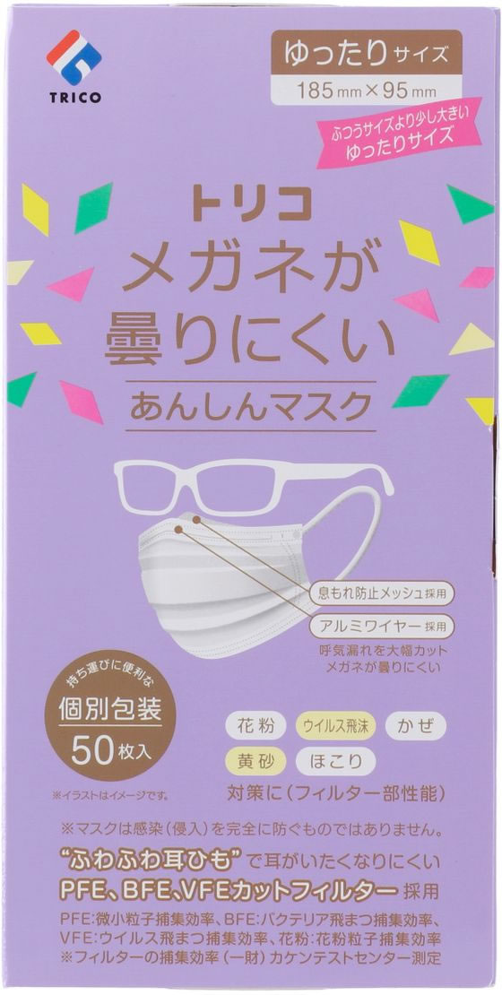 トリコ メガネが曇りにくい あんしんマスク ゆったり 50枚 1箱(ご注文単位1箱)【直送品】