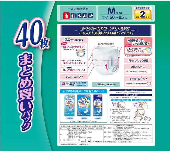 ライフリー うす型軽快パンツ スルッとはける 2回 M 40枚 1パック(ご注文単位1パック)【直送品】