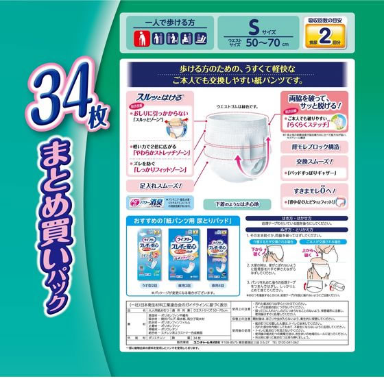 ライフリー うす型軽快パンツ スルッとはける 2回 S 34枚 1パック(ご注文単位1パック)【直送品】
