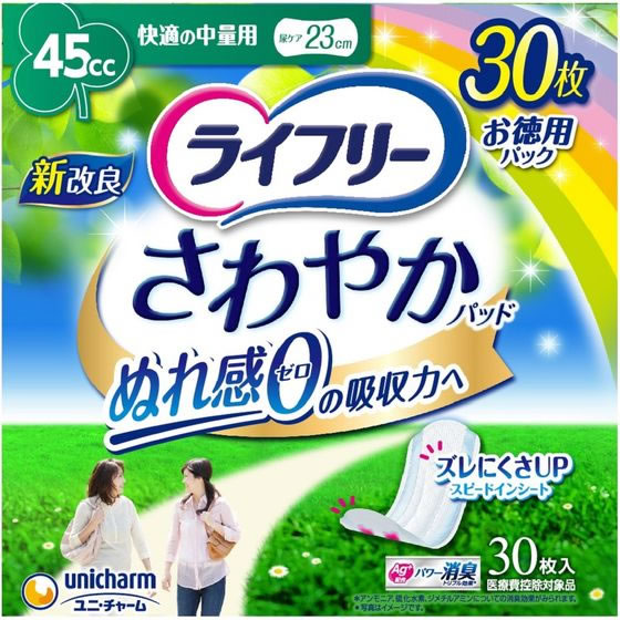 ライフリー さわやかパッド 快適の中量用 45cc 30枚 1個(ご注文単位1個)【直送品】