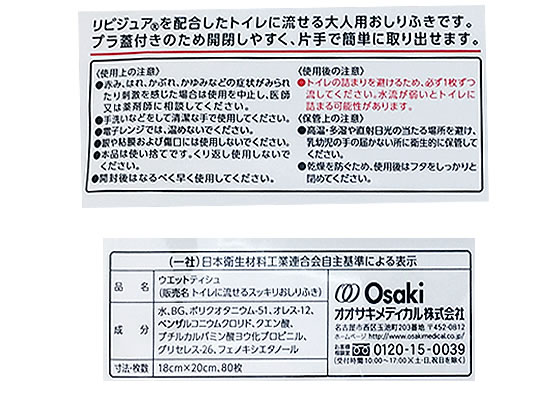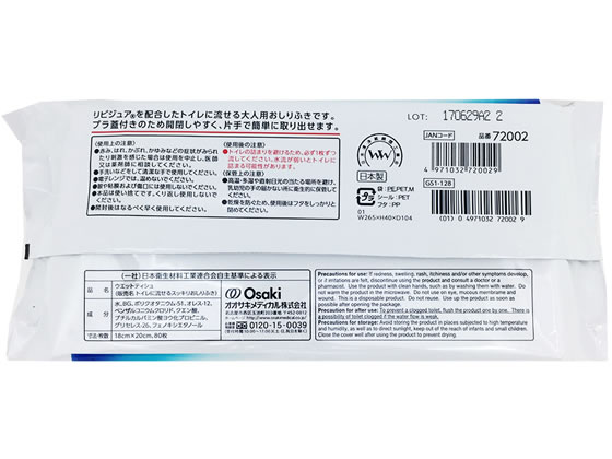 オオサキメディカル トイレに流せるスッキリおしりふき 80枚 72002 1個(ご注文単位1個)【直送品】