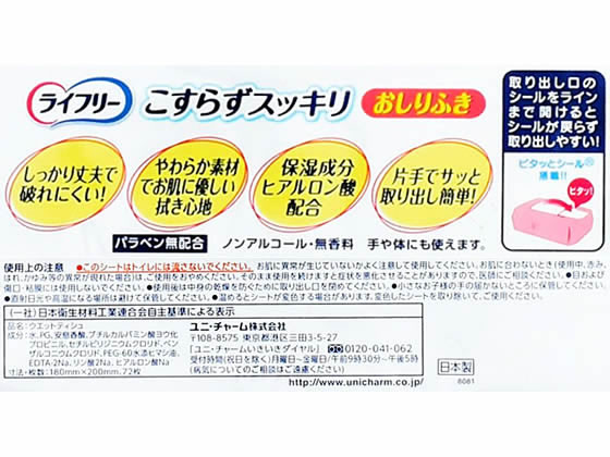 ユニ・チャーム ライフリーおしりふき こすらずスッキリ 72枚 1パック(ご注文単位1パック)【直送品】