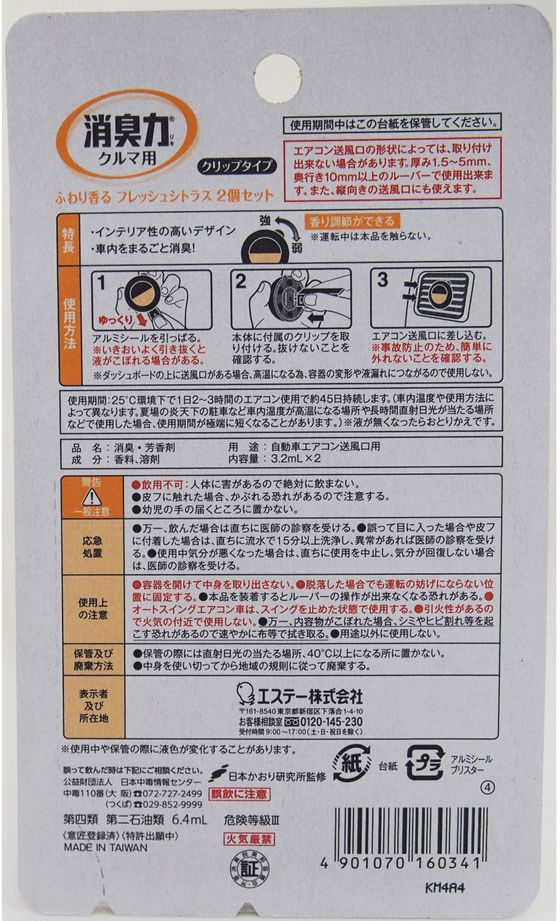エステー クルマの消臭力 クリップタイプ 2個セット シトラス 1パック(ご注文単位1パック)【直送品】