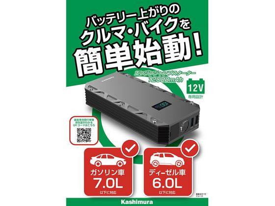 カシムラ ジャンプスターター 12000mAh ディスプレイ付き KD239 1個(ご注文単位1個)【直送品】