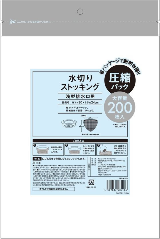 システムポリマー ストッキング水切り袋浅型排水口用 200枚入 1袋(ご注文単位1袋)【直送品】